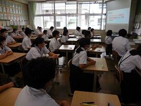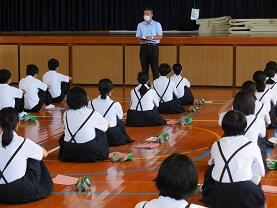 全体指導では圖師進路指導主事が、「言葉遣いや行動を意識し、入試のつもりで緊張感をもって臨むこと。目的意識をもって臨むこと。中学校が指定した時間に集合すること」などの話がありました。今回は、延岡・延岡工業・延岡星雲・延岡商業の説明でしたが、複数校希望の生徒やその他の高校の説明は、昼休み等に行います。新型コロナの影響から、すでに延期になった学校もありますので、今後の動向に注意していきたいと思います。