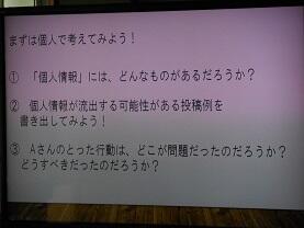 いじめられた時は一人で悩まず、いかに勇気を出して周囲の大人に悩みを告白し、解決の道を探ってもらうことが大切であるかを伝えます。また、周りの大人がいじめのSOSをいかに早く正確につかみ、的確に対処することの大切さを再確認します。