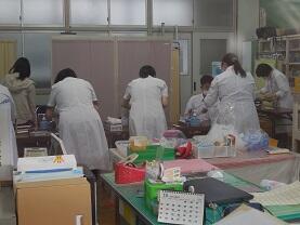 24日(火)、県健康づくり協会の方々にお越しいただき「貧血検査」が行われました。発育期である生徒の「貧血」を早期発見する目的で、全校生徒を対象に行われました。多目的室に待機し、数名が保健室に移動することで3密を回避しました。