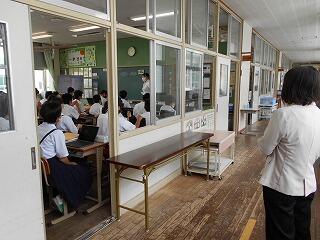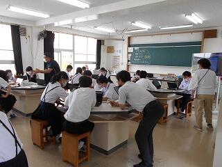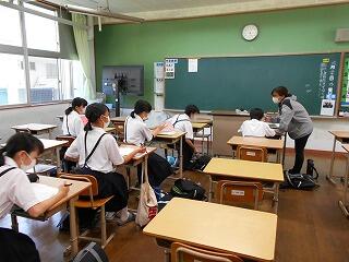 旭小学校の先生方が、本校の授業の様子を参観に来られました。特に小学校を卒業したばかりの1年生の成長の様子を見て喜んでいらっしゃいました。また、中学生としての規律ある学習態度も参観していただきました。