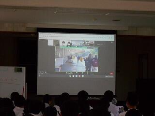 お互いに学校や地域の紹介を行いました。それぞれの学校の様子についてはあらかじめ作成した動画で説明を行いました。