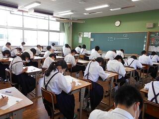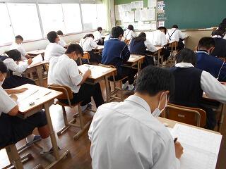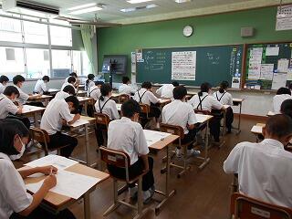 3年生の実力テストが始まりました。各生徒がテストに真剣に取り組んでいましたが、事前の学習の成果を十分に発揮できたでしょうか?