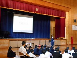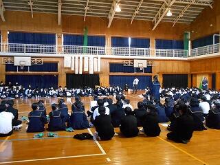 対面式では、はげまし隊の方々の紹介のあと、生徒代表のあいさつがありました。