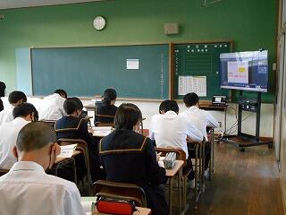 慶応義塾大学SFC研究所と連携して行う「論理コミュニケーション」の遠隔授業を実施しました。この取組は、延岡市内の全中学校が参加するもので、本校は3年生を対象に本日からスタートしました。