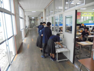 各学級では、係の生徒を中心に、夏休みの課題の点検や提出の準備が進められました。課題の進み具合はどうでしょうか? 1・2年生は、夏休み明けに実施される定期テストの範囲に含まれるものもあります。思うように進められなかった課題については、残り約10日間でしっかりと進めてほしいです。