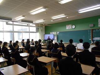 始業式の後、「県アンサンブルコンテスト」、「租税に関する作文」、「選挙に関する標語・ポスター」、「BFC標語、書写、ポスター」の表彰が行われました。