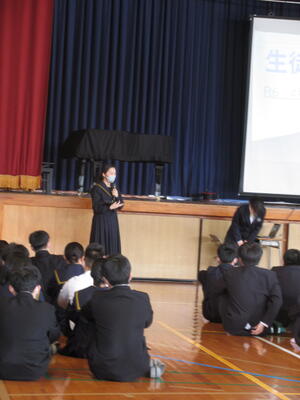 学校生活の基本となるところを全校生徒で確認しました。特に1年生は1日も早く慣れて中学校生活を送ってほしいです。