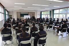 今年度最初の全校専門委員会ということで、生徒会全員参加での話し合いでした。3年生中心に積極的な意見交換をするようすが見られました。