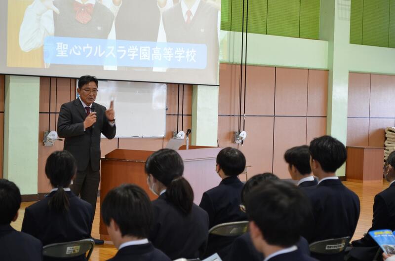 最後に校長先生からのお話があり、これからの進路に向けて、頑張っていけるよう、生徒たちへの応援も含めたお話がありました。