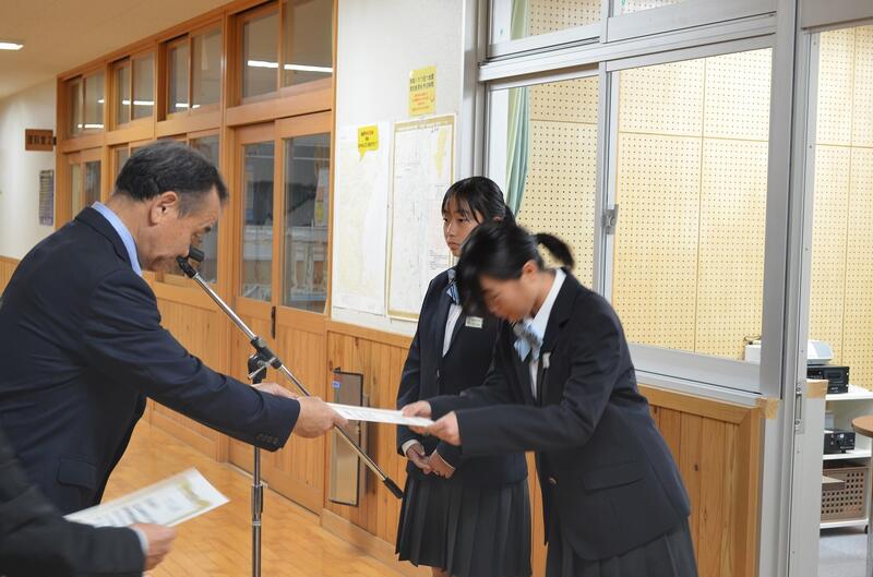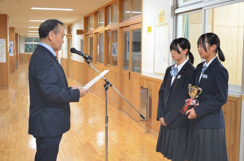 各部活動の生徒たちの功績を称えるとともに、一人一人に賞状が贈られました。最後には、校舎全体で拍手が沸き、すばらしい表彰式となりました。
