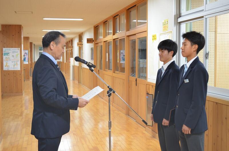 最後に校長先生から、代表生徒への労いの言葉と冬休み中の過ごし方など、安全でよりよい生活を過ごしてほしいという願いが伝えられ、式は終了しました。