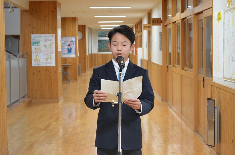 合唱コンクールが終わり、英語での暗唱弁論が行われ、こちらも日々の練習の成果を発揮し、流暢な英語で、自らの訴えや主張を全校生徒の前で披露してくれました。