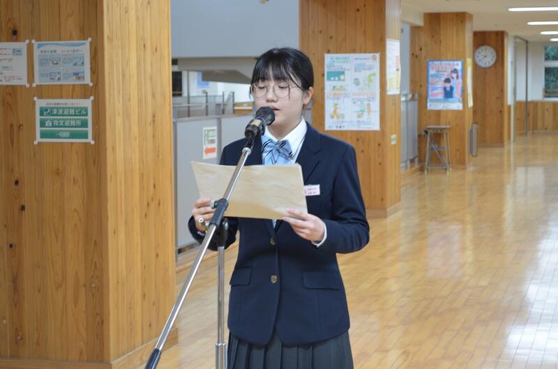 スピーチが終わり、大きな拍手が校舎に響きました。