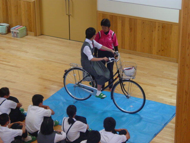 東九州自動車学校から3名の講師の先生に来ていただき、自転車の点検の仕方、自転車に乗る際の注意点など詳しく教えていただきました。これから登下校や部活動の移動の際には十分注意して自転車に乗ってください。