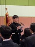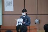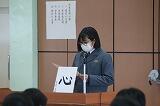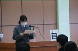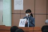 各クラス2名の生徒が、決意を表す漢字1文字を書いた色紙を前に決意表明を行いました。