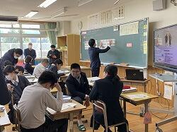 室町時代の文化を題材に、人権・同和教育研修会の一環として行われ、たくさんの先生方が参観されました。