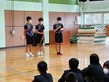 今週末(6/3)からスタートする「地区中学校総合体育大会」の推戴式を、今年度は全校生徒が集まった中で行うことができました。