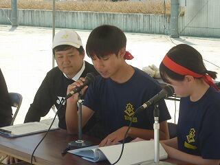 集会では生徒会の進行のもと、①キャプテン(代表者)からの決意表明、②生徒代表の応援の言葉、③選手宣誓…と進んでいきました。