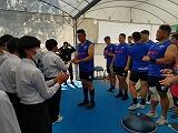 11月1日 西階地域活性化プロジェクト「ラグビー選手の土台になろう!」(3年1組)として、西階運動公園で合宿中の静岡ブルーレヴズの練習を見に行ってきました。