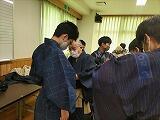 講師として、キャリア教育支援センター よのなか先生より山本先生他数名の先生に来校していただき、浴衣の着付けを教えてもらいました。