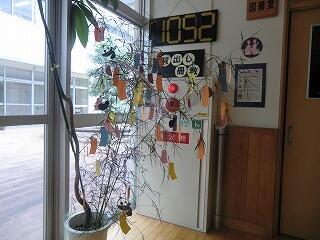 今日は七夕でした。図書室前に七夕飾りが設置され、生徒たちが願い事を書いた短冊を飾りました。