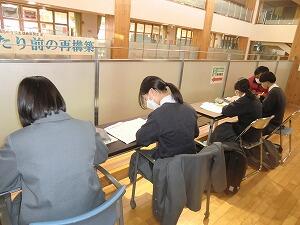 質問がしやすいように、職員室の近くに机を並べて学習をしています。