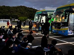 2年生108名が西階運動公園駐車場で出発式を行い笑顔で出発しました。
