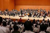 今回は、九州交響楽団によるオーケストラ公演で、生徒達もワクワクした表情での参加でした。プロの奏でる音の迫力に圧倒されただけでなく、指揮や、打楽器を一緒に演奏したりする体験コーナーもあり、有意義な時間を過ごすことができました。アンコールでは、校歌の演奏が!