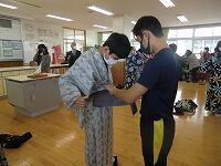 よのなか先生2名による浴衣の着付け体験が行われました。