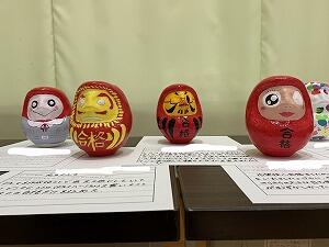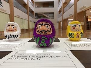 3年生が美術で「合格祈願だるま」を作成しました。表情豊かなだるま達が出来上がりました。