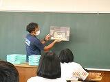 コットンロードが出来上がるまでの流れを、先生方が事前に準備した紙芝居を使って紹介。興味津々で話を聞く生徒の姿が大変印象的でした。
