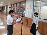 第62期生徒会役員の退任式が行われました。一人ずつ挨拶を行い、校長先生から感謝状を受け取りました。