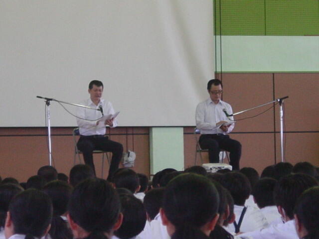 本日(6月8日(金))宮崎市の「サラみやざき」さんに来ていただき、平和学習とキャリア教育学習を行いました。