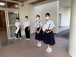 16日~30日までの朝、希望の坂道や下足室前であいさつ運動を立候補者が行っています。