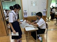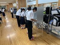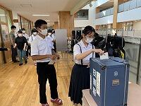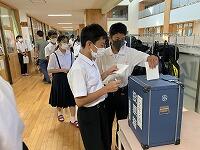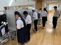 どの立候補者、責任者の演説も素晴らしい内容で、各教室でメモをとりながら真剣に取り組む姿が見られました。投票箱と記載台は、実際の選挙に使用されるものを借りてきて行われたので、緊張感が漂う中での投票でした。