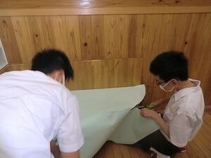 西階中学校の生徒用トイレのコーナーに飾りつけを行いました。