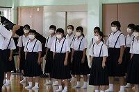 西階中学校の中心となって活躍してくれていた、生徒会役員の退任式と新しい生徒会役員の認証式が行われました。今までの活動を振り返りながら感想を述べる時、目に涙を浮かべながら話す姿も見られました。今まで、どれだけ頑張ってきてくれたかが分かる瞬間でもありました。新生徒会のメンバーも、緊張していましたがやる気に満ち溢れているようです。協力しながら、学校全体で頑張りましょう!
