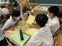 2年1組でジグソー法を用いた数学の研究授業が行われました。