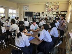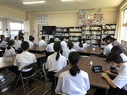 夏休み中ですが、26日(金)に、延岡中学校と西階中学校の生徒会役員で、お互いの学校の特色や、現在の活動について活発な情報交換が行われました。