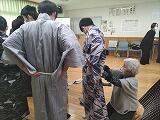 ○ 講師の先生方に手伝っていただきながら、浴衣を着て、帯を結びました。