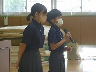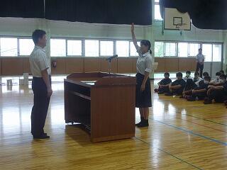 集会では生徒会の進行のもと、①キャプテン(代表者)からの決意表明、②生徒代表の応援の言葉、③選手宣誓…と進んでいきました。
