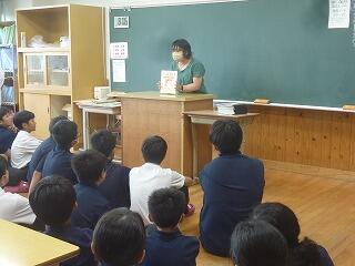 コットンロードが出来上がるまでの流れを、先生方が事前に準備した紙芝居を使って紹介。興味津々で話を聞く生徒の姿が大変印象的でした。