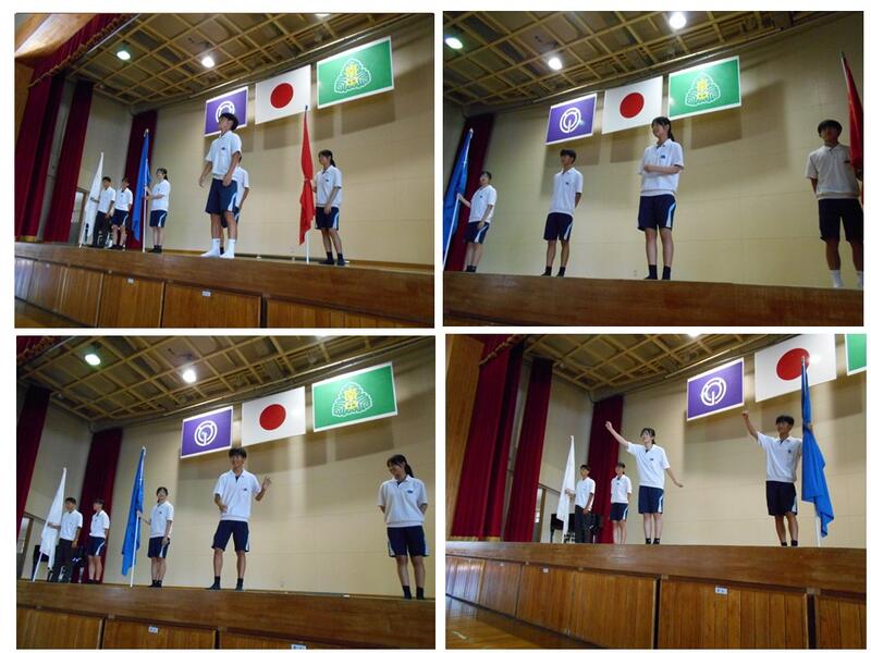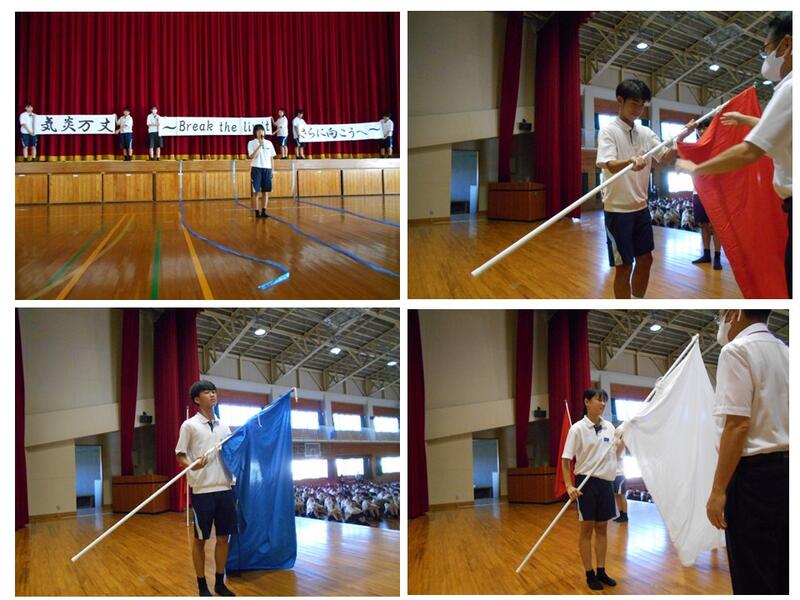 7月31日(水)結団式の後、リモートにて終業式を行いました。各学年、生徒会の代表が1学期の反省と2学期に向けての抱負を発表しました。明日から1ヶ月の夏休みに入りますが、特に命を守ることを最優先にして行動し、安心・安全で学びの多い有意義な夏休みにしてください。