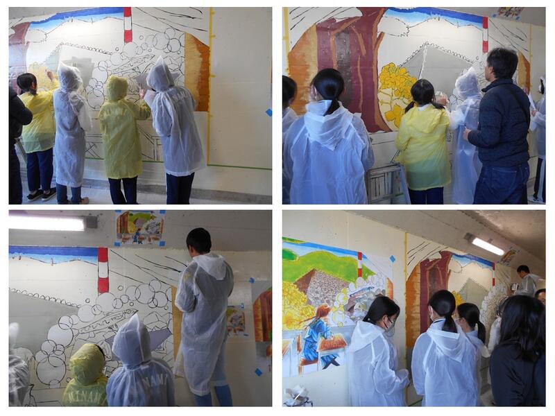 12月26日(火)青少年育成協議会主催の「壁画プロジェクト」に本校の美術部が参加しました。このプロジェクトはコロナ禍のため数年ぶりの開催でしたが、近隣の小学生や地元の工芸会社の方と協力して約4時間ほどで「壁画」を完成することができました。子ども達は係の方の指導を仰ぎながら楽しく参加することができました。