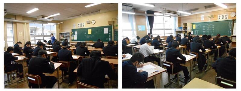 1月30日(火)、31日(水)本年度最後の定期テストを実施しました。どの生徒も最後まで真剣にテストに取り組んでいました。3年生は来週に県立推薦入試が控えており緊張する日々が続きますが、体調管理には十分気をつけて、入試に臨んでもらいたいと思います。