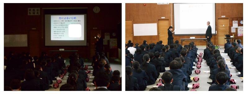 2月1日(木)延岡警察署延岡地区サポートセンターの興梠様を講師としてお招きし1年生を対象にいじめ防止教室を行いました。人との関わりの中で何気ない言動が時に人を傷つけたりすることがあります。常に相手の立場に立って、思いやりの気持ちをもって交流を深めてもらいたいと思います。