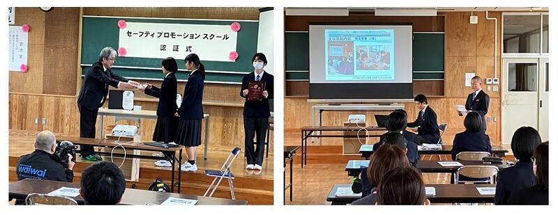 2月2日(金)セーフティプロモーションスクール(SPS)認証式が行われました。本校の防災教育や安全教育等「学校安全推進」への取組が評価され、今回、認証を受けることになりました。認証式では生徒代表がこの1年間の取組を堂々と発表しました。