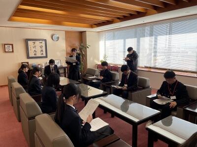 12月18日(木)に、3年生8名が市長室にて、これからの延岡についての提案を行いました。11月に行ったNEI研究大会での提案内容をより具体的にブラッシュアップし、直接、市長に提案しました。新聞社やケーブルTV等の取材もうけましたので、ぜひ、ご覧ください。(ケーブルTVワイワイは22日(月)の放送予定です。)