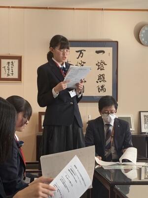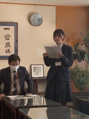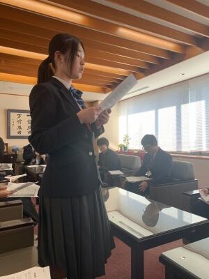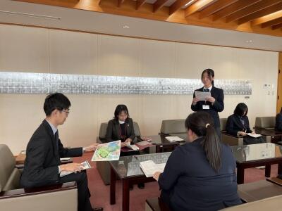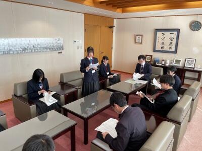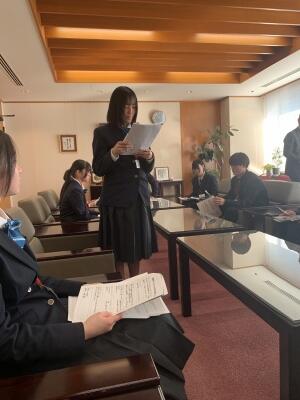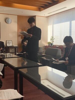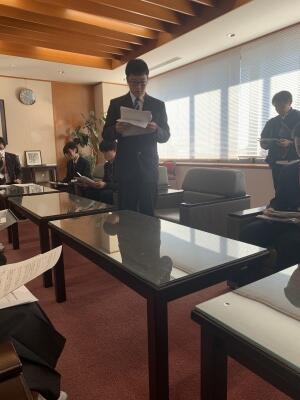 緊張しながらも、しっかりと様々な提案をし、三浦市長からもお褒めの言葉をいただきました。延岡に貢献したいという気持ちが伝わり、これから具体的にできることをやっていってほしいものです。貴重な経験となりました。指導支援していただいた方々に感謝いたいます。ありがとうございました。