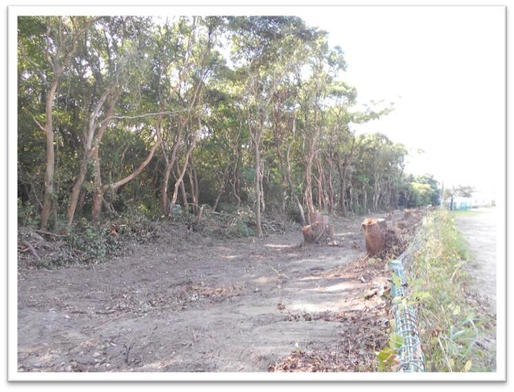 学校に隣接する防潮林の約5mほどを、南北200mに渡って伐採してもらいました。